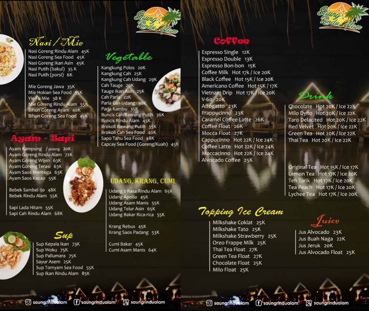 Tempat ini terletak di kecamatan bontomarannu kabupaten gowa sulawesi selatan. Saung rindu alam adalah rumah makan dengan penataan tempat yang alami menjadikan rumah makan ini indah dan nyaman dengan menyuguhkan berbagai masakan khas makassar yang lezat ekky kyel mark as new. Masuk ke tempat ini rasa rasanya seperti di lembang bandung.